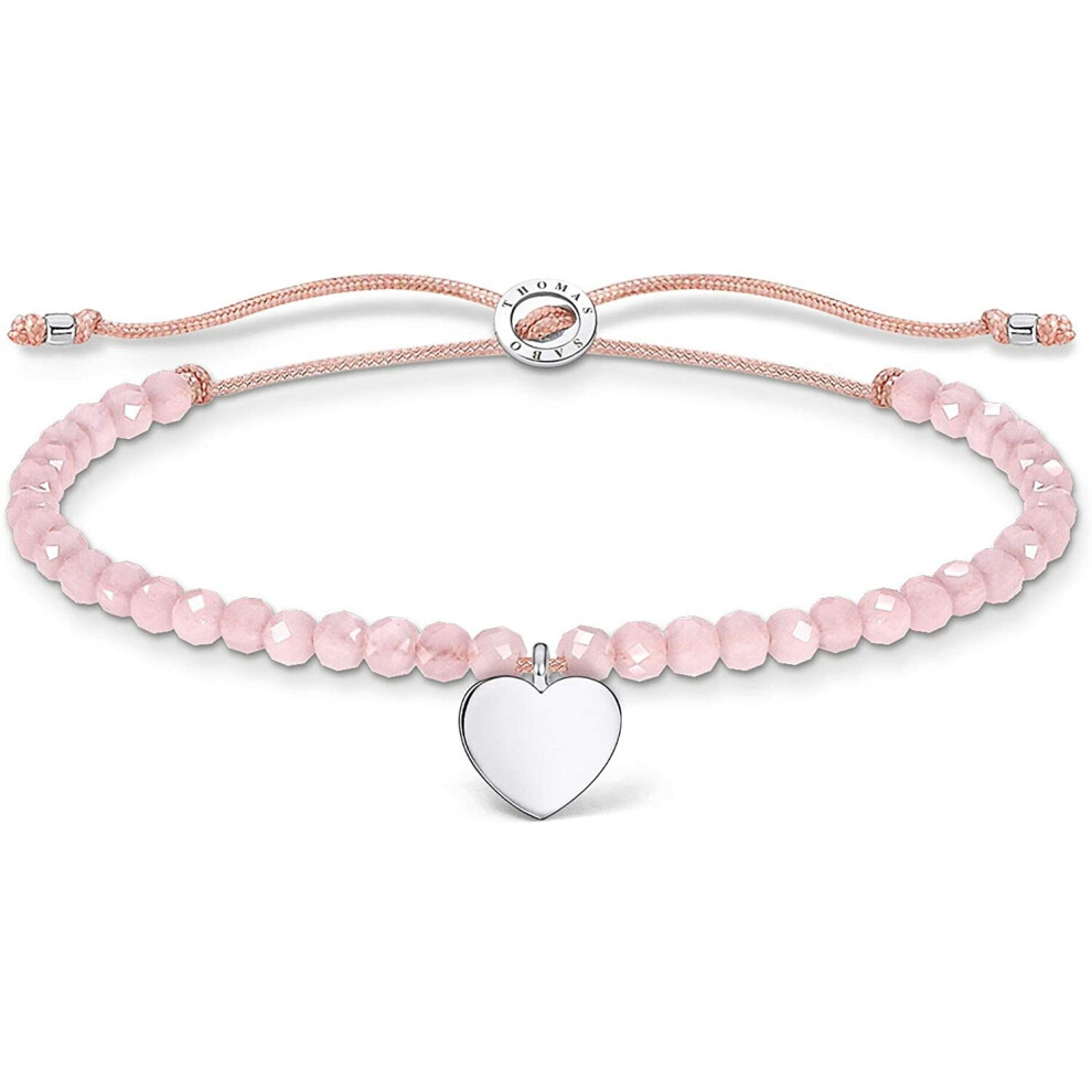 Mix and match! Whether solo or in combination with other pieces of jewellery, the hand-crafted textile bracelet by Thomas Sabo, decorated with beads made of faceted rose quartz and a heart pendant, sets a fine colour accent on the wrist. Thanks to the sliding clasp, the bracelet can be individually adjusted in length from 13 cm to 20 cm.