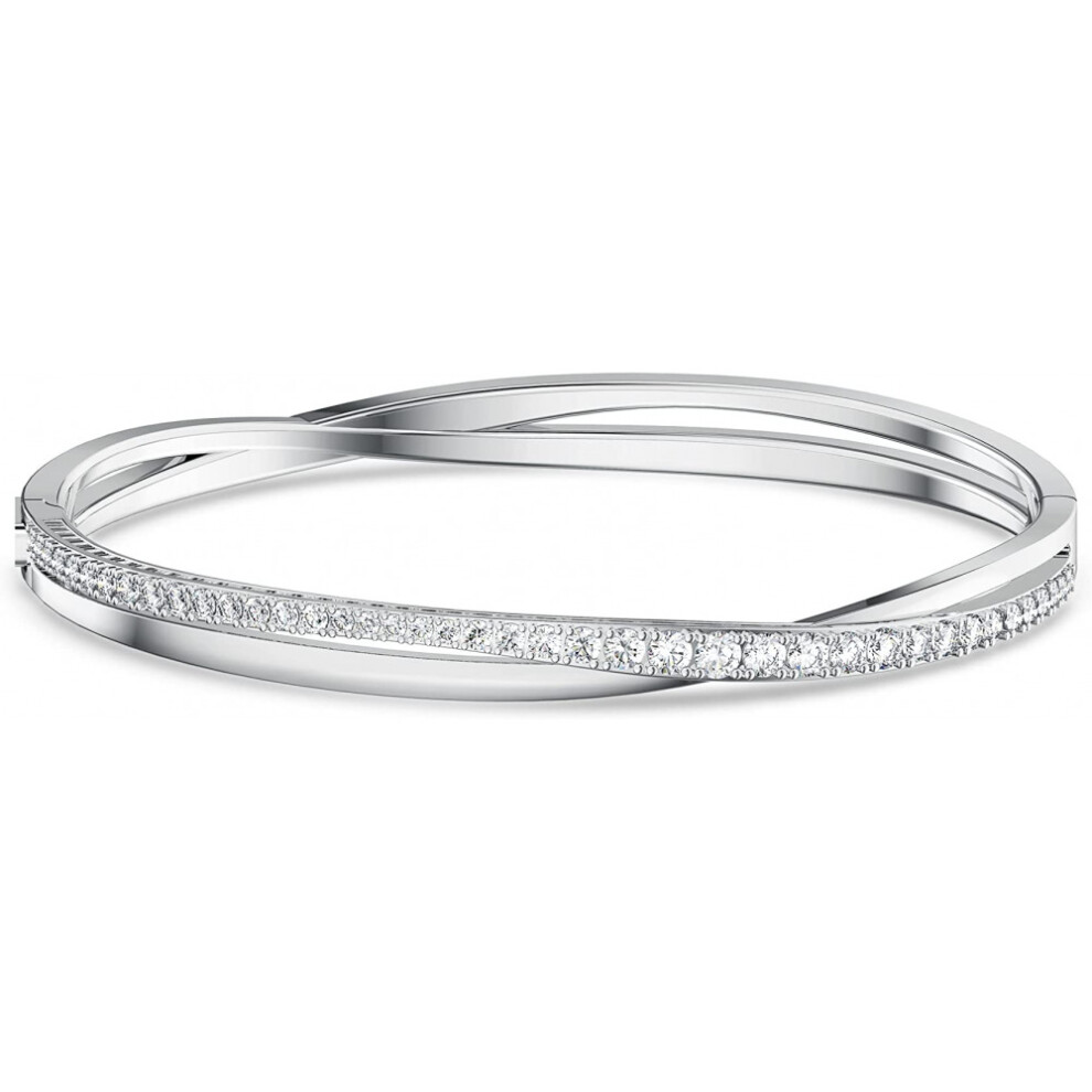 Items delivered: 1 x Swarovski Twist Rows bracelet with white Swarovski crystals on twisted rhodium plated strap, 0.5 x 1 x 14.96 inches
