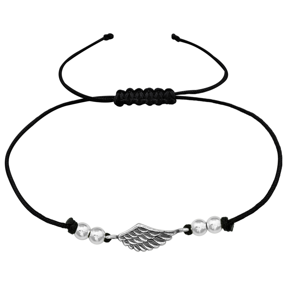 This unique bracelet features delicate wing charms on a sturdy cord. The adjustable length makes it perfect for any wrist size.Â