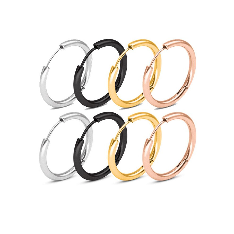 (Black, 20mm) 2pcs 10/20mm Silver Black Rose Gold Men Women Surgical Steel Sleeper Hoop Earrings