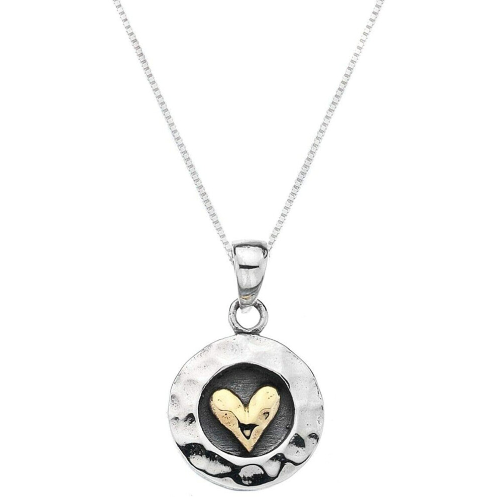 This cleverly handcrafted sterling silver pendant features a brass heart within an oxidised silver circlet. This piece can be coordinated with several other items across our collection and has been created by Cornish jewellery designer brand, Pure Origins Â, who take inspiration from the organic shapes of nature. Dimensions: 14mm long x 14mm wide Available with all chain lengths Brand new and boxed with branded satin pouch.. Love Heart Pendant Sterling Silver 925 Hallmarked Necklace All Chain Lengths. Metal: Sterling Silver | Metal Purity: 925 parts per 1000. Style: Pendant | Main Stone: Not Applicable. Pendant Shape: Heart.