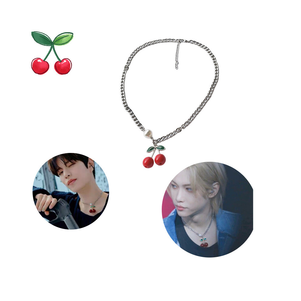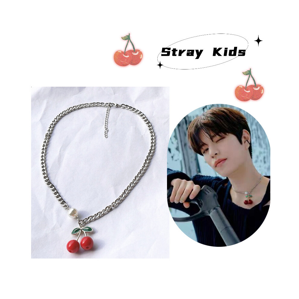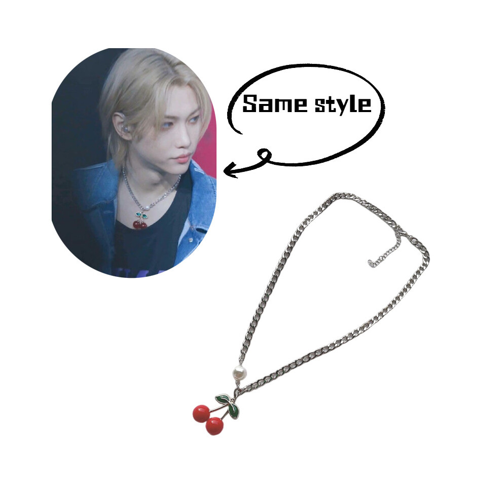 Stray Kids Lee Yong Bok Same Style Titanium Steel Cherry Necklace Gift Accessory