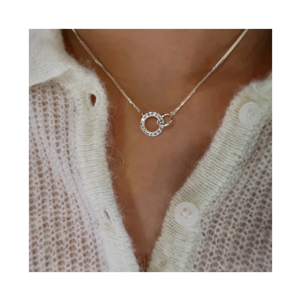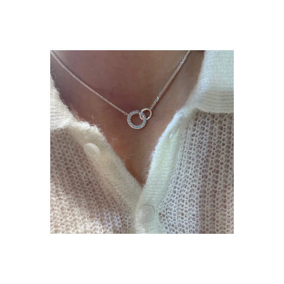 Shiny Rhinestone Double Circle Pendant Necklace For Women Girl Clavicle Choker Fashion Jewelry Gift Party collier femme
