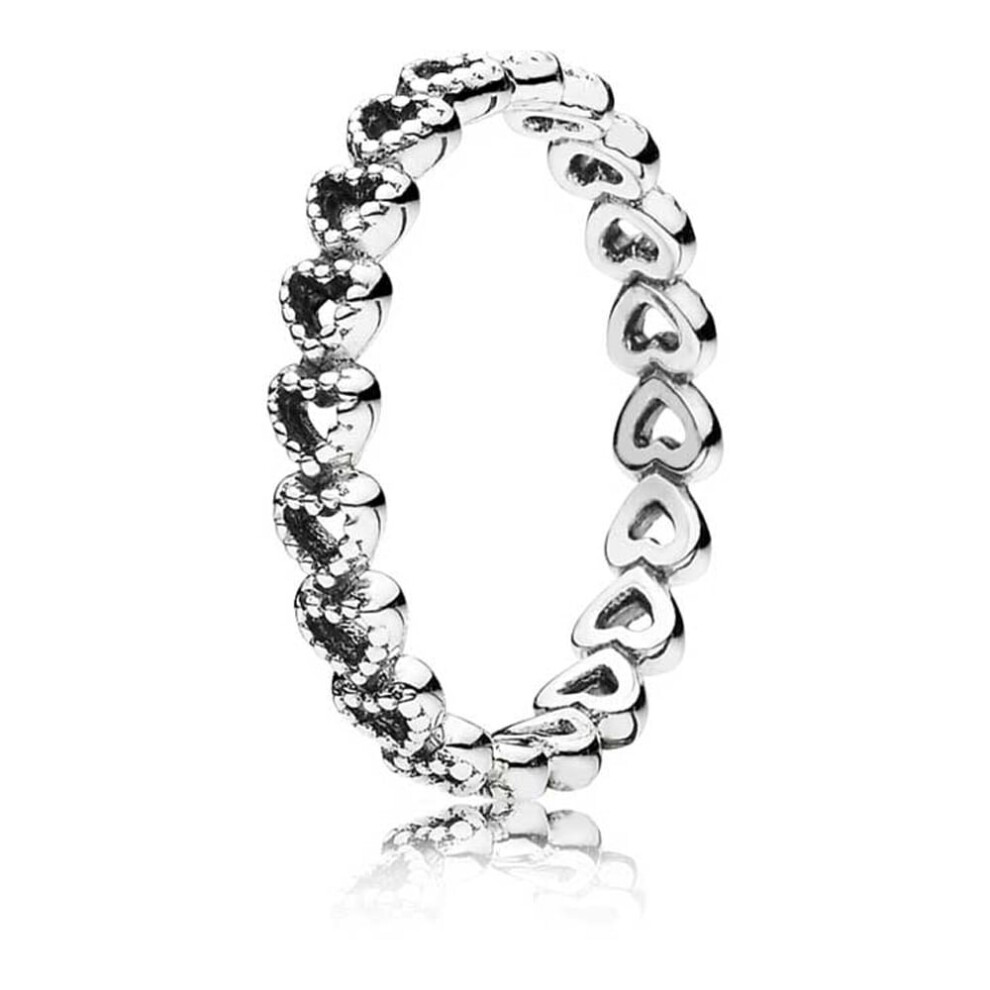 Give a gift from the heart with this gorgeous openwork ring, the perfect way to express your love. Exquisitely crafted in sterling silver, this delicate style features a band of hand-finished hearts and delicate bead detailing. The romantic design looks equally beautiful worn on its own or layered with contrasting Pandora rings.