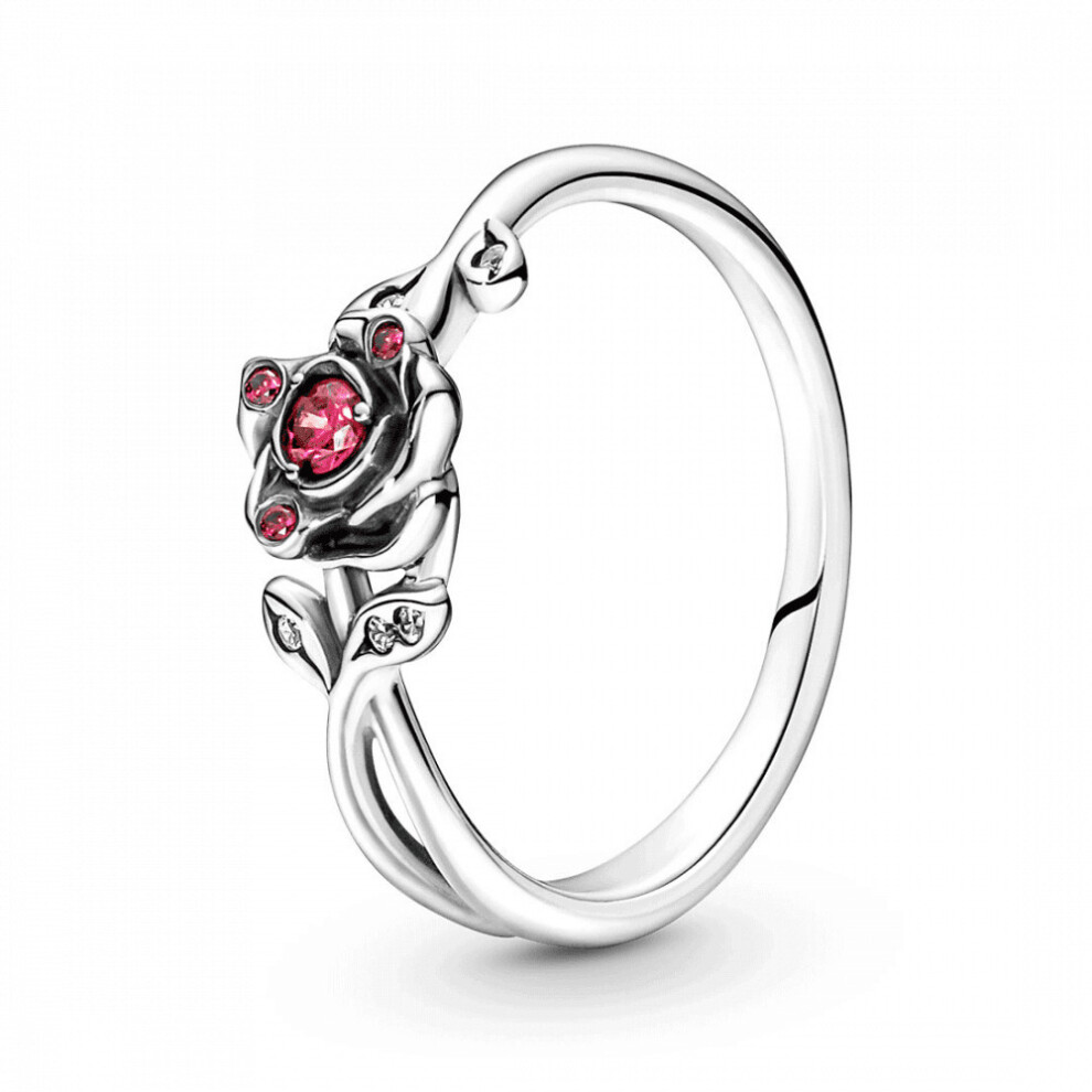 Be transported into a magical world with the Disney Beauty and the Beast Rose Ring. Inspired by the enchanted rose from the movie, the ring features a red cubic zirconia stone rose in the centre of the band, surrounded by openwork leaves and curved branches along with three smaller red stones. Celebrating the imperfect but magical love between Disney’s Belle and the Beast, the ring makes an elegant, whimsical addition to any look.